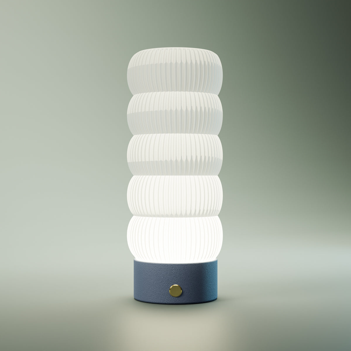 Lámpara Recargable Modelo WAVE. Diseñada y fabricada con tecnología 3D. Ilumina hasta 2 horas con su máxima potencia.